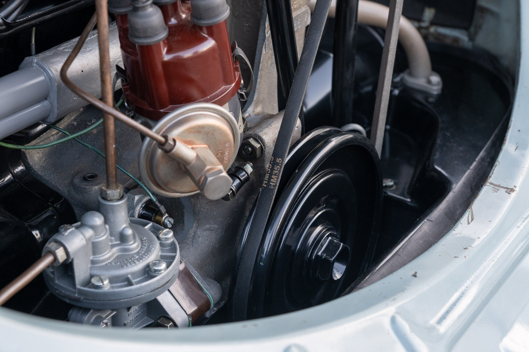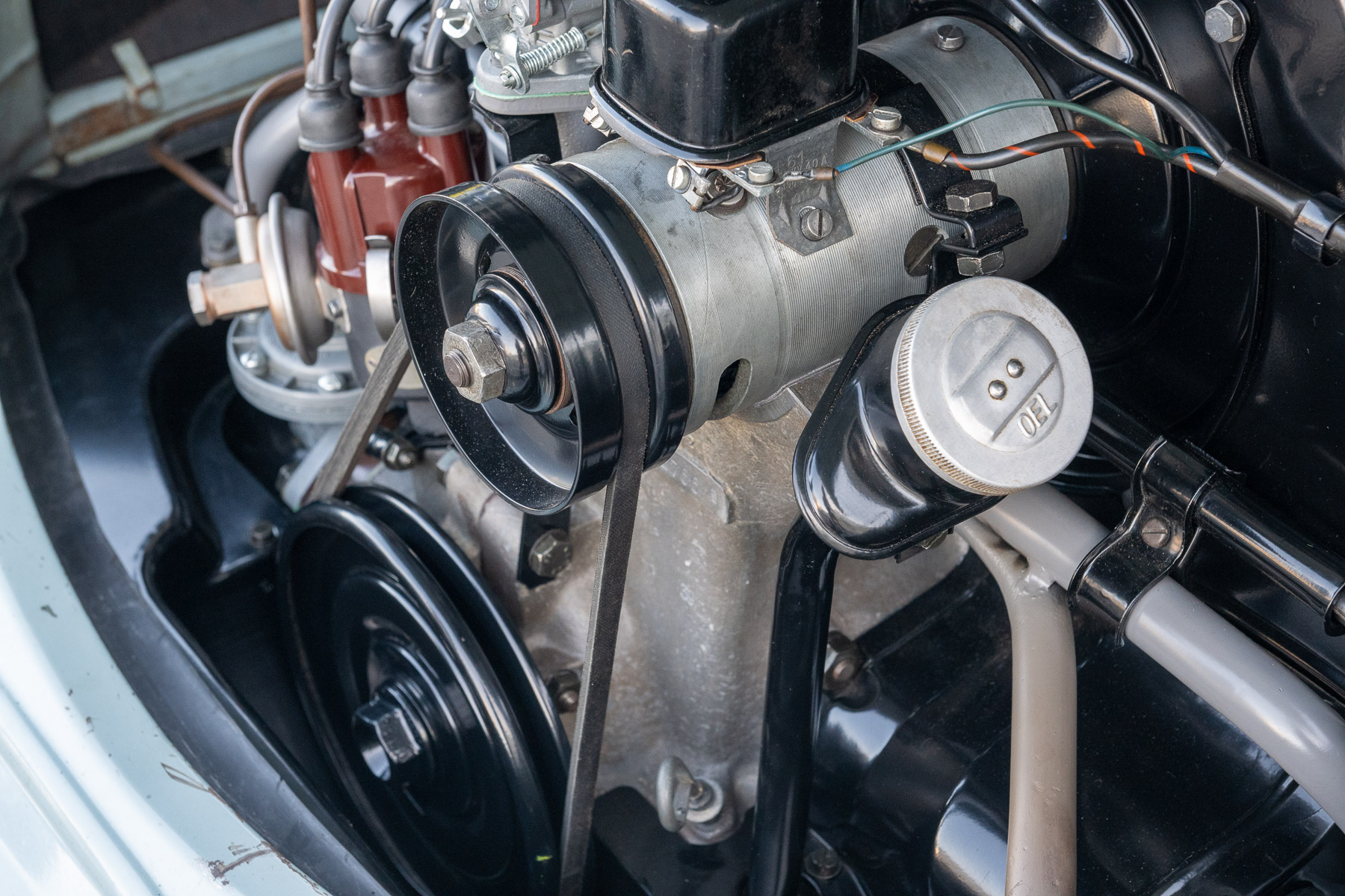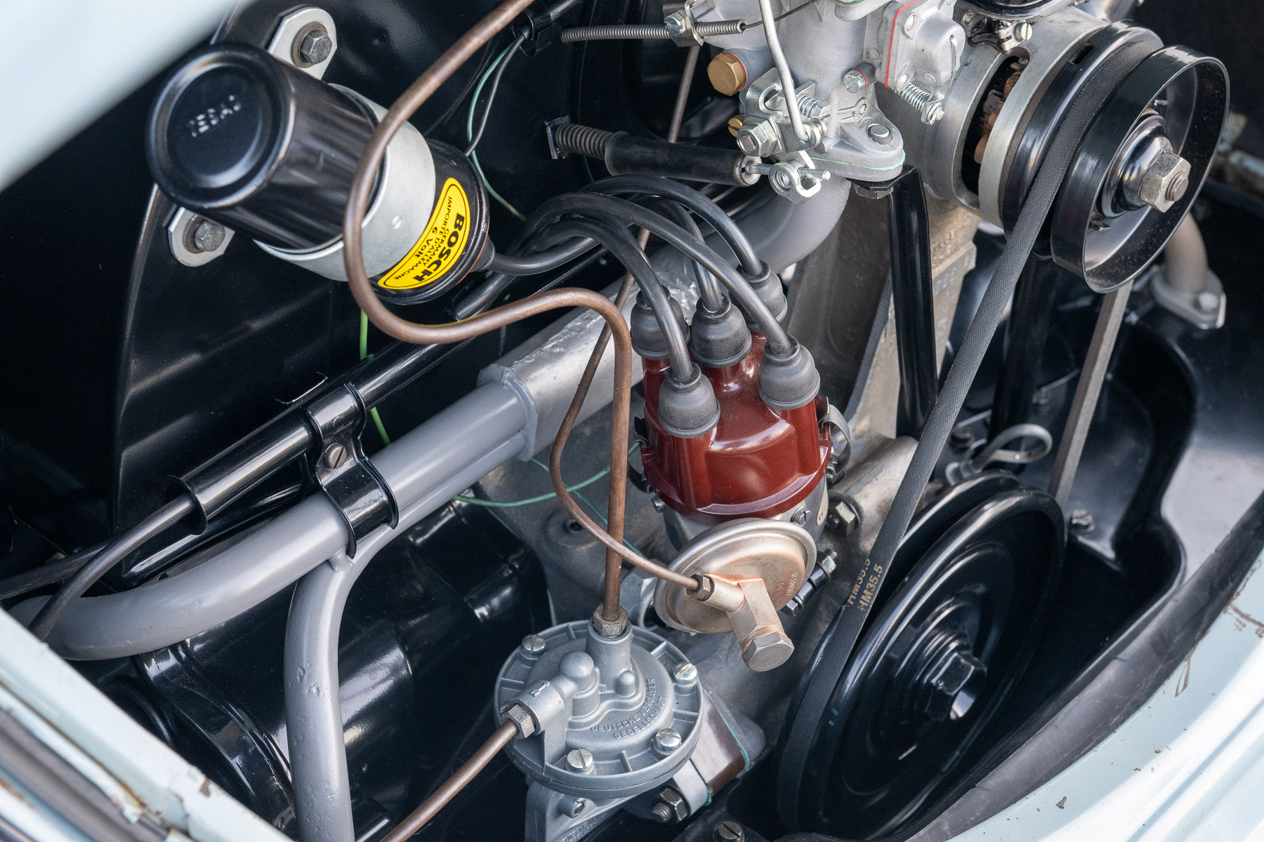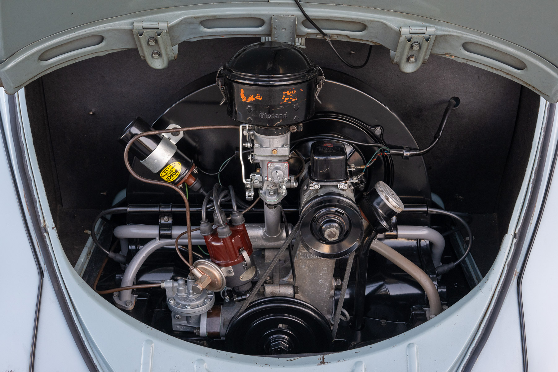 The goal for the engine rebuild was to give it a little more power to keep up with modern traffic while still retaining the stock look. To that end, George opted for AA 80mm pistons and a mild cam manufactured by Wolfsburg West.