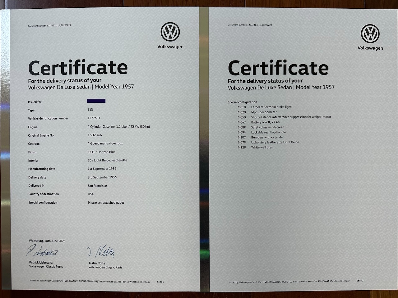 I purchased the car in Jan 2022 when the car had 50,505 miles on the odometer and now shows 52,5xx. It has a clean and clear California title. After doing the mechanical restoration, I put close to 1500 miles on the car and engine driving it to various shows. This included taking it to RVA d'Elegance in Huntington Beach where the car took First in Class honors in the 53-57 stock oval window class.