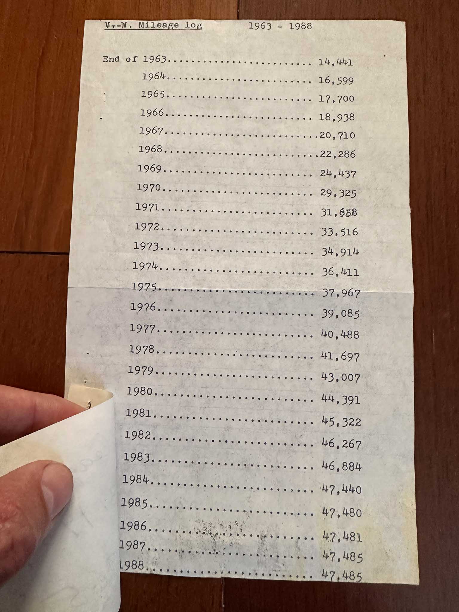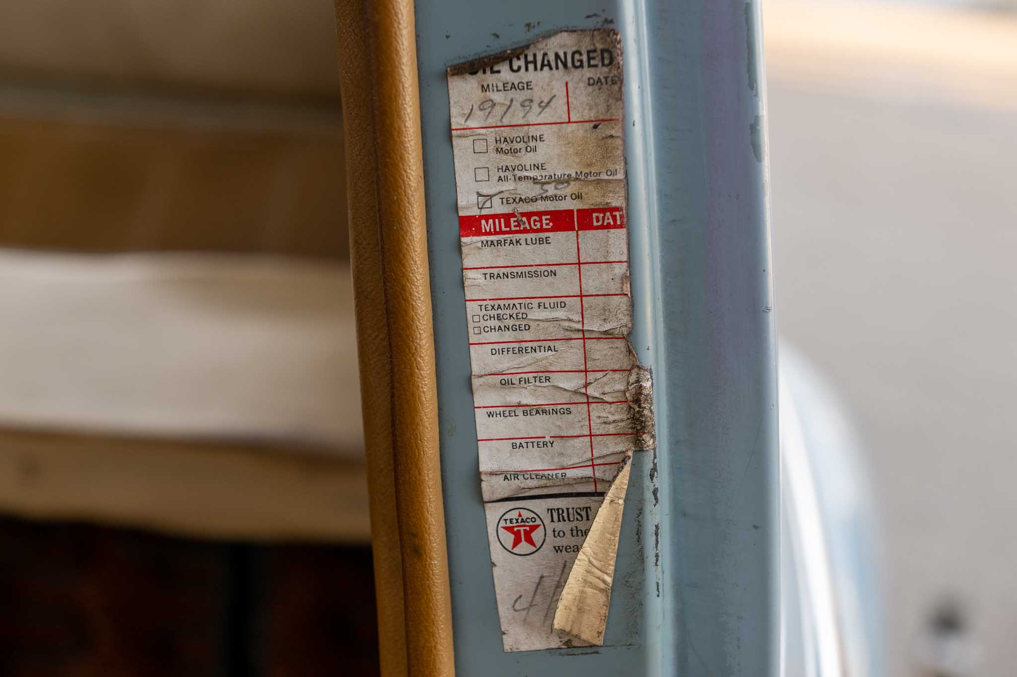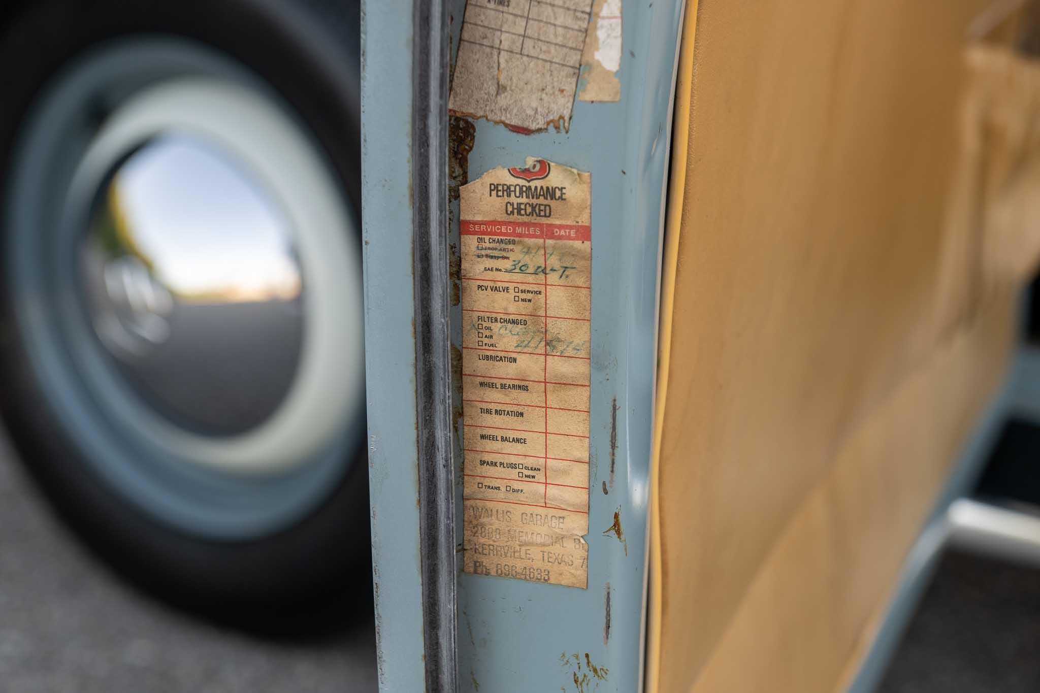 From the documentation I have, there are detailed mileage records until 1988. In 1989, the car was purchased by Glen W Doyen in Kerrville Texas with a mileage of 47,765. In 1997 with 47,882 miles on the odometer, the car changed hands and went to Colorado with a gentleman named Scott Pool. Scott owned the car until 7/2017 at which point it was purchased by Scott Roberts and moved to Russellville Arkansas with 50,148 on the odometer. I then spotted the car for sale, saw the detailed pictures and could not resist the chance to own this time capsule.